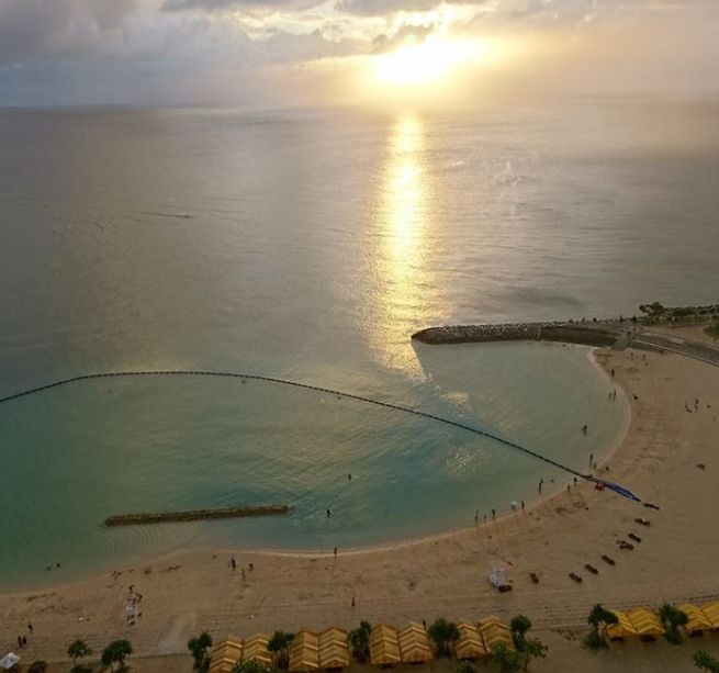たまたま止まったホテルから見た海と夕焼けが美しい・・・