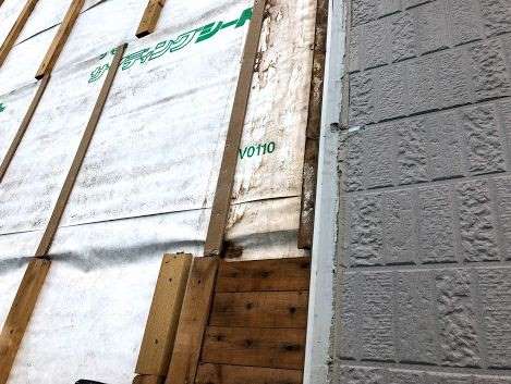 隙間があり、雨水がサイディングと透湿防水シートの間に浸入する