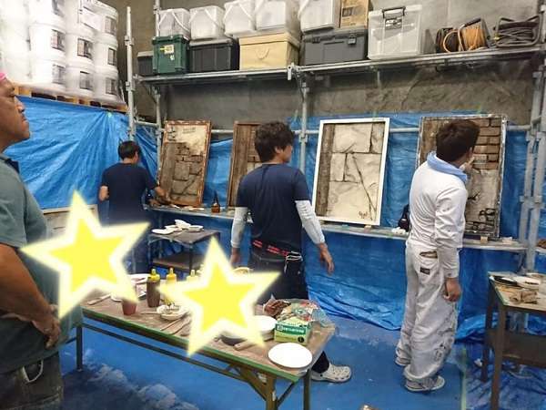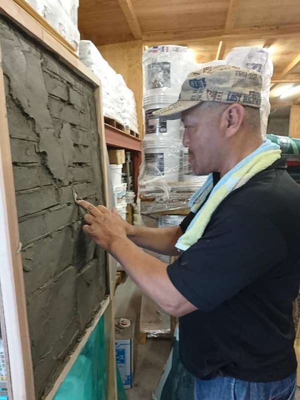 現場でタイルや石積を表現して塗装で仕上げていく技法です。