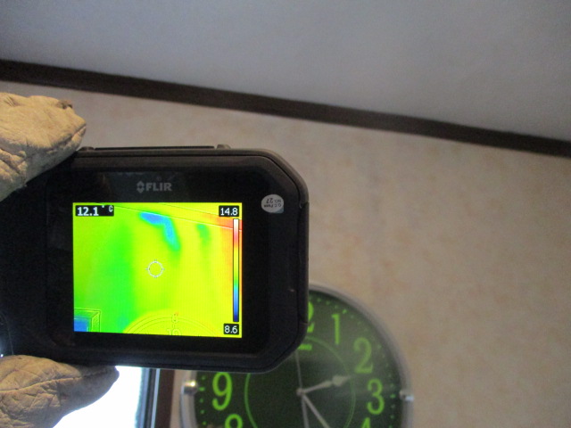 サァーモグラフィーカメラ(赤外線)や水分計で測定したが反応は無し。