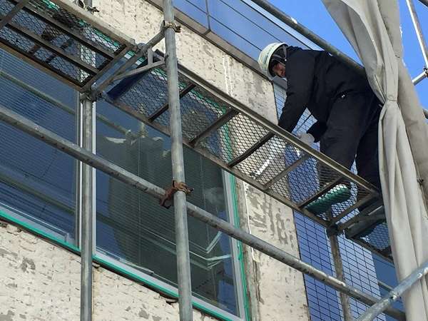 というのも、コンクリートの施工は1階を作ってから2階を積み上げるように施工していきますが、1階と2階の切れ目にはシーリング(コーキング)で止水を行っています。理由はコンクリートの打設にタイムラグがあると一体化した壁にならない性質がある事から、シーリングによって止水を行います。当然、看板の撤去した部分にコンクリートで壁を新たに作っても既存コンクリートとはなじまずに壁として一体化しません。