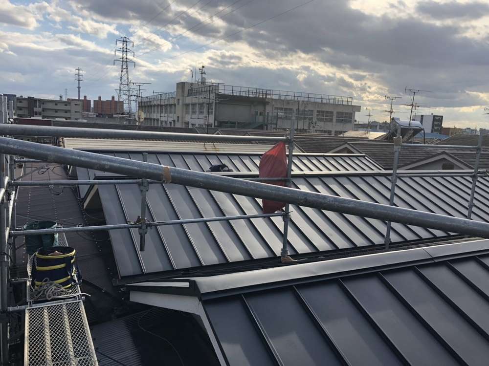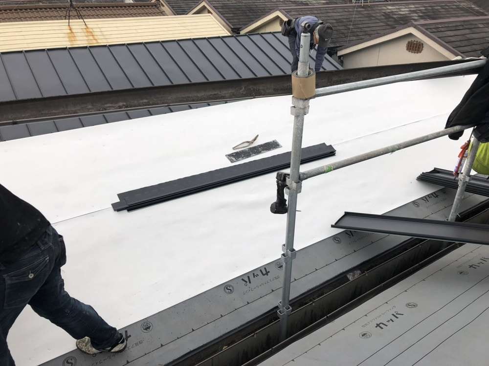 私の現場ですが屋根材を撤去後に二次防水の施工をおこなています。