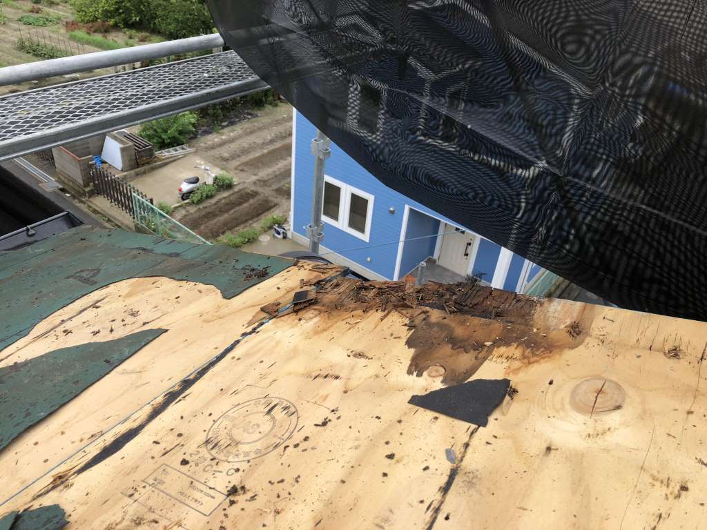 ビスや釘が固定されないという事は、また強い台風で屋根が部分的に飛ばされるリスクが上がる。