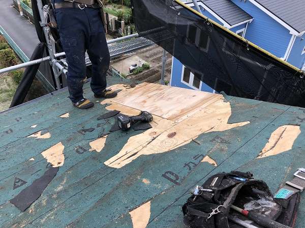 葺き替える為、野地板が腐っている状態で、新設の屋根を施工するリスクがある。