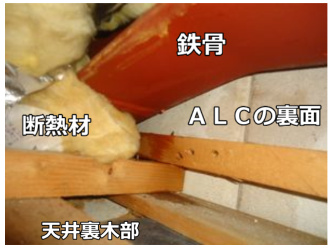 この写真は、ALCパネルの裏面(室内側)です。2015年頃から、ALCにも透湿防水シートの使用を推奨するメーカーが出てきましたが、2015年以前は透湿防水シートが使用されていませんでした。