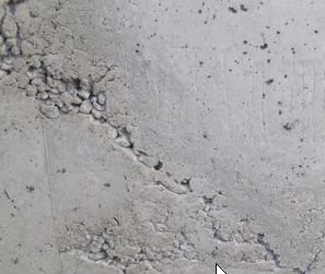 コンクリート打設時の締め固め不足や、セメントと砂利の分離でおこるジャンカ(右の写真、凸凹した部分がジャンカです)および貫通クラックが雨漏りの原因になります。