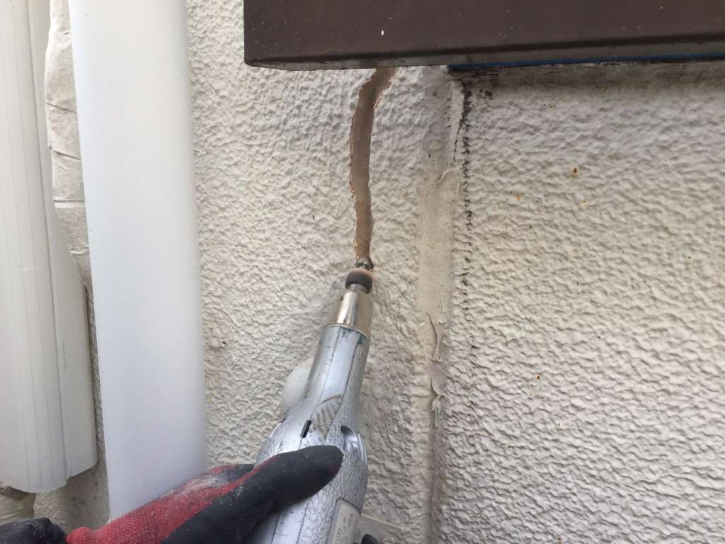 モルタル壁のクラック部分を、グラインダーという機械で広げる工法がありますが、オススメできません。モルタル壁のように壁厚が12mmから30mm程度だと、グラインダーの歯で2次防水の透湿防水シートを切り込んでしまう危険性があります。